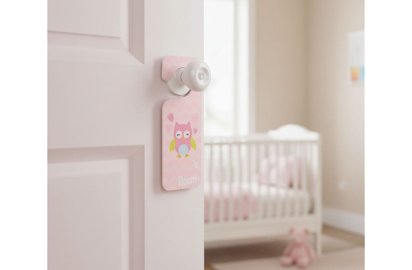 The Koala Baby Owl Door Hanger can easily be personalized with included white alphabet stickers to create a one-of-a-kind room accessory for your little one. Fits any standard door knob. Reverse side is blank. Measures 9.75" x 3.75" x 0.38"