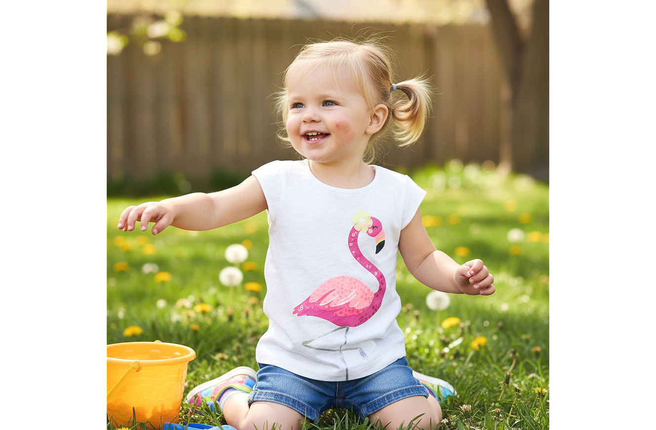 A sequin-enhanced flamingo graphic adds a fun touch to this fashionable T-shirt for her designed by Carter's.